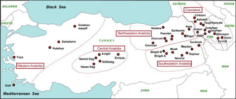 · Turquie, au pied du Mont Ararat, où on trouve de l'obsidienne translucide; · sur l'île de Milos au Sud de la mer Egée.