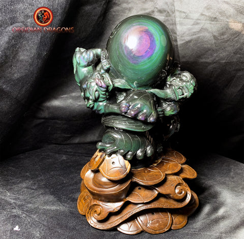 L’obsidienne oeil céleste aussi appelée obsidienne arc en ciel de puissante connexion avec le divin, favorisant fortement les capacités extrasensorielles.