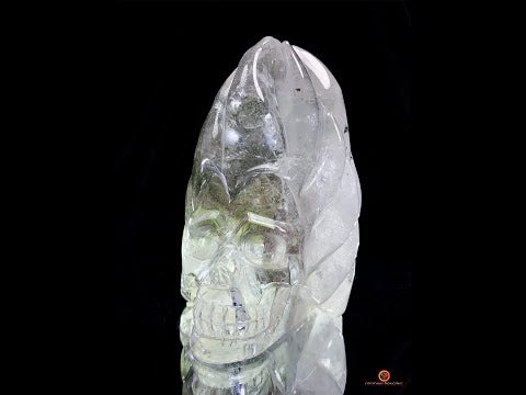 This Lodolite Quartz Crystal Skull – Inner Flames is a sculpture of exceptional aesthetic and vibrational depth. It combines the qualities of a rock crystal skull, an esoteric object, and a collector's skull with high energetic value.