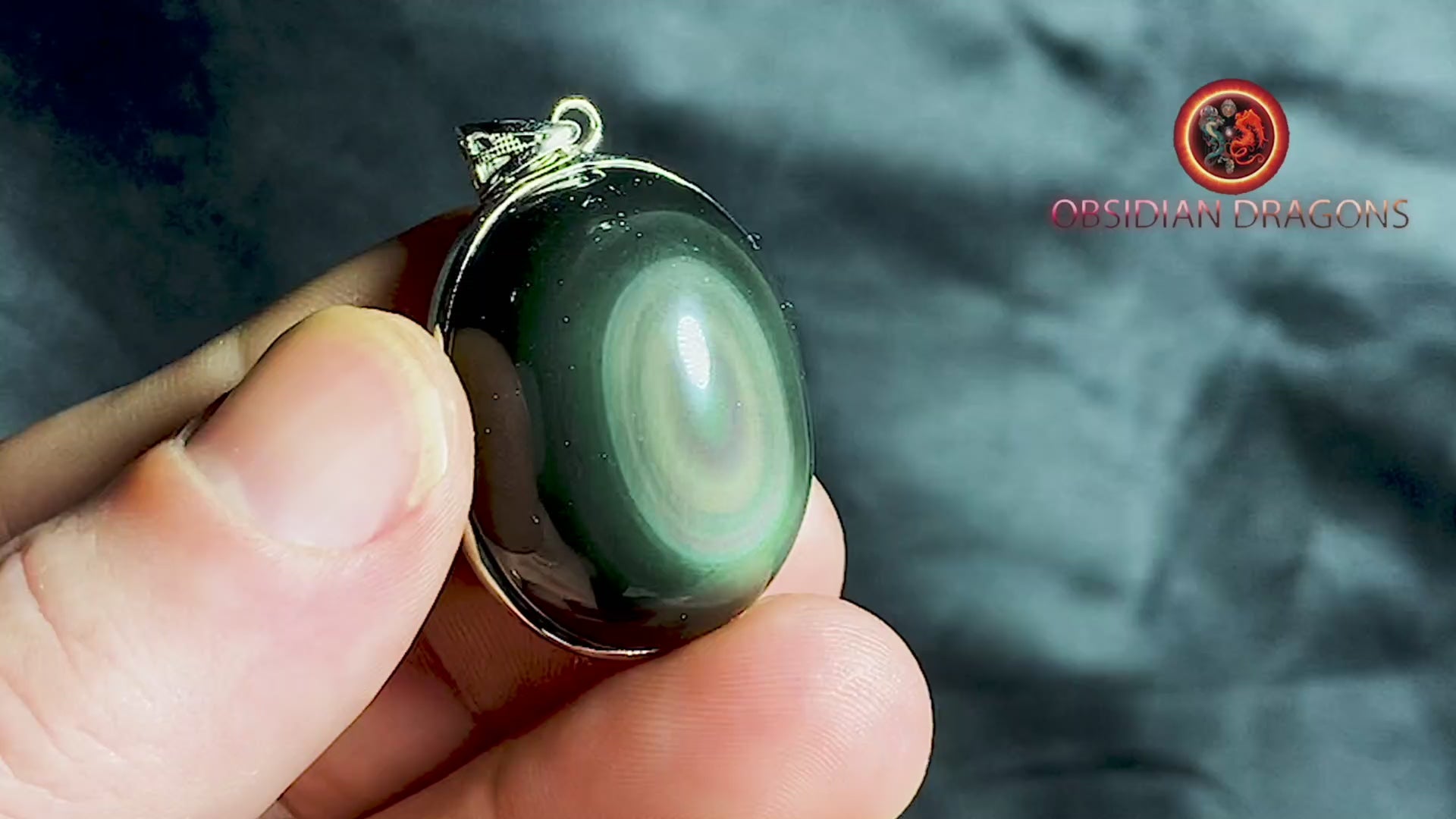 Pendentif, obsidienne oeil celeste naturelle, sertie en argent 925, pièce unique
