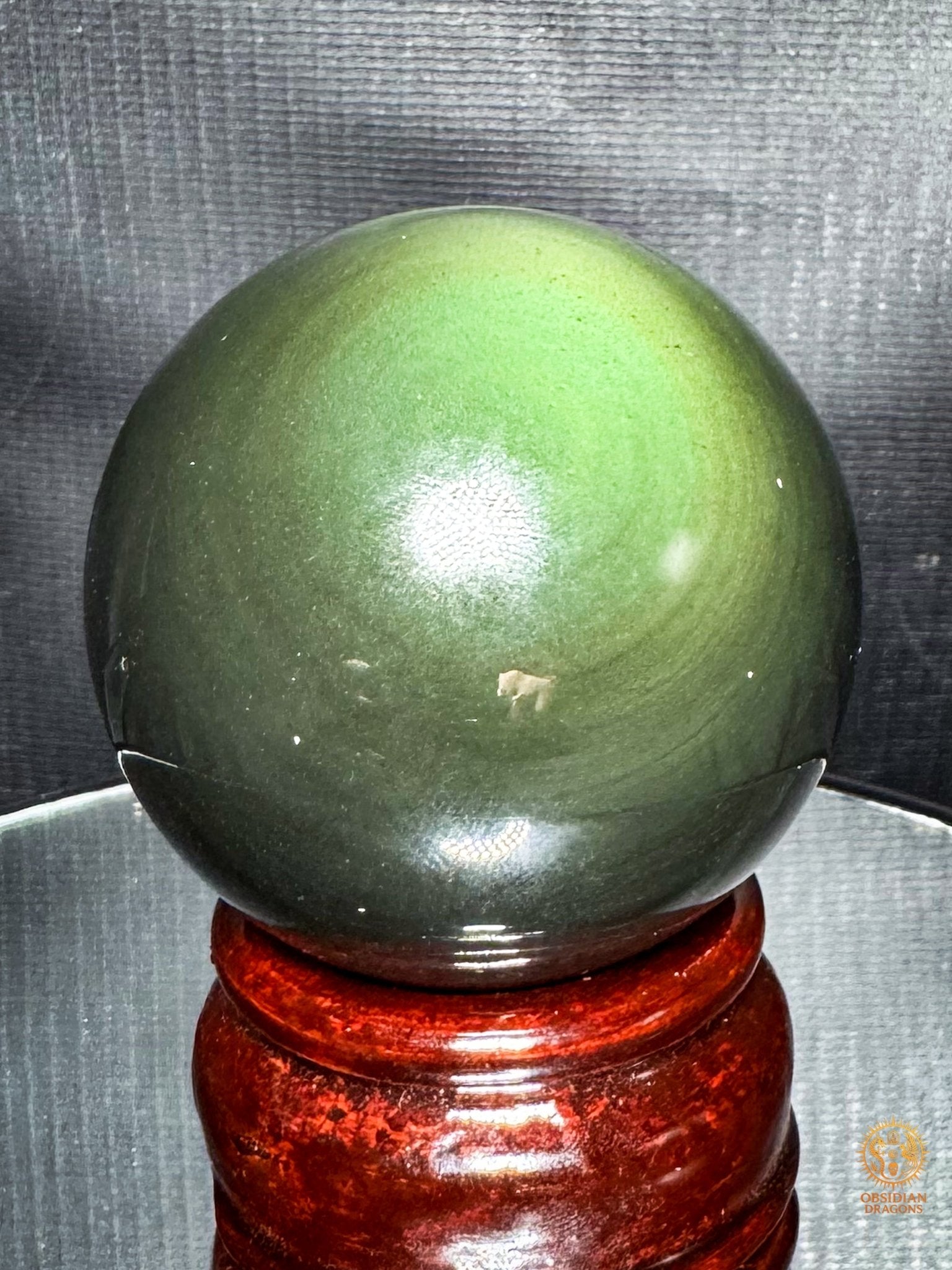 Objet de Décoration : Avec ses reflets captivants de vert de bleu et de noir, cette Sphère en obsidienne œil céleste ajoute une touche ésotérique à votre intérieur.