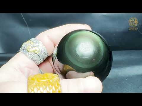 Guérison et Purification : l'obsidienne œil céleste est également prisée pour ses capacités à libérer les blocages énergétiques et à purifier les traumatismes anciens. une Sphère en obsidienne œil céleste étant souvent employée dans des rituels de guérison spirituelle.